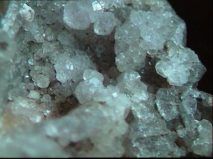 | Levyn Kristalle bis 3mm mit unbekanntem Zeolith (vermutlich Thomsonit), Finagles Pinnacles, Isle of Skye, Schottland (alternative Ansicht). | |