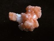 | Thomsonit auf Chabasit, Quiraing, Isle of Skye, Schottland. Die größe der Thomsonit-Aggregate auf dieser Stufe beträgt zwar nur 2 mm aber der Farbkontrast zu dem rötlich durch die Chabasite durchscheinende Gestein macht diese Stufe extrem attraktiv. | |
